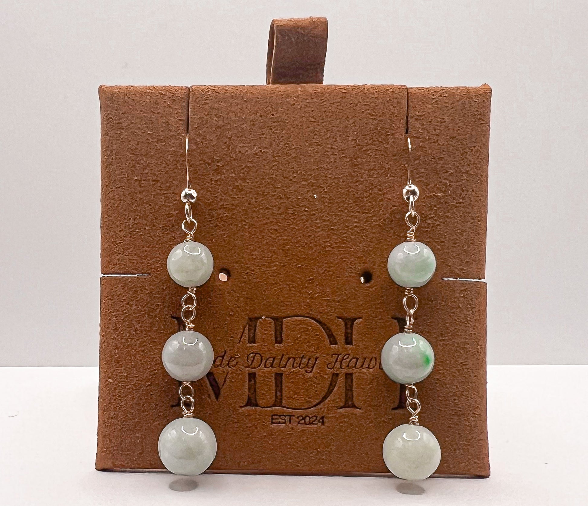 These 7mm-8mm triple light green jade earrings feature smooth jade stones paired with gold-filled hooks, combining natural elegance with durable, tarnish-resistant metal. Their lightweight design and soothing green hue provide a calming accent to any outfit, making them perfect for daily wear. Enjoy both beauty and comfort with these carefully crafted earrings that support a balanced, effortless style.