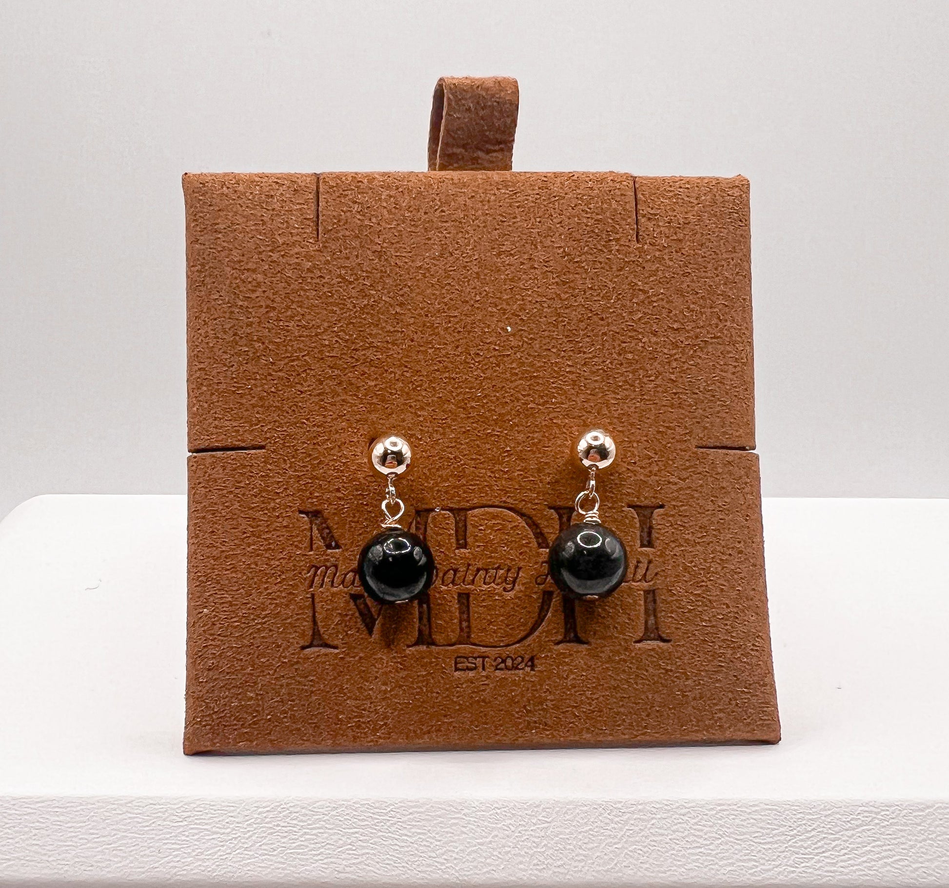 These 7mm black jade earrings, set in 14k gold-filled balls, offer a timeless and elegant look suitable for everyday wear or special occasions. The natural black jade brings a subtle touch of sophistication, while the gold-filled setting ensures durability and a radiant shine. Perfect for those seeking a balanced blend of beauty and resilience, these earrings can effortlessly complement any outfit.