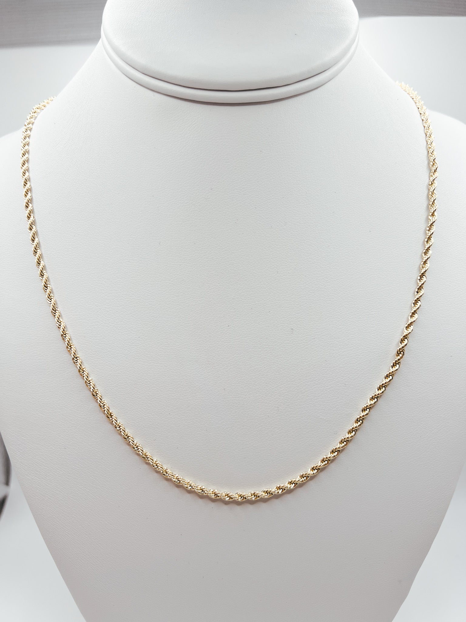 The Hilo Rope Chain 2.5mm is a durable and stylish gold-filled necklace designed for daily wear. Its 2.5mm thickness offers a perfect balance of strength and elegance, making it ideal for layering or wearing alone. The gold-filled material ensures long-lasting shine and resistance to tarnish, providing a beautiful piece that supports your everyday style with dependable quality.