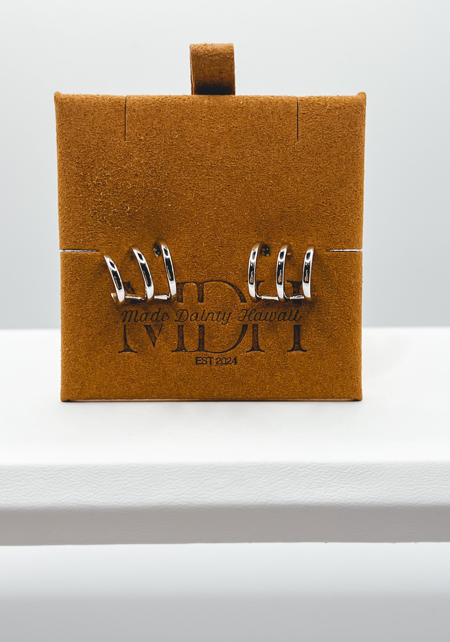 Elevate your ear game effortlessly with the Triple Hooped by MDH—sterling silver hoops designed to mimic the look of second and third lobe piercings without the commitment. These lightweight, comfortable hoops add layered dimension and modern edge to your style, perfect for those who want multiple piercings without the pain or healing time. Crafted with care, they bring a sleek, polished finish and versatile wearability to any outfit.