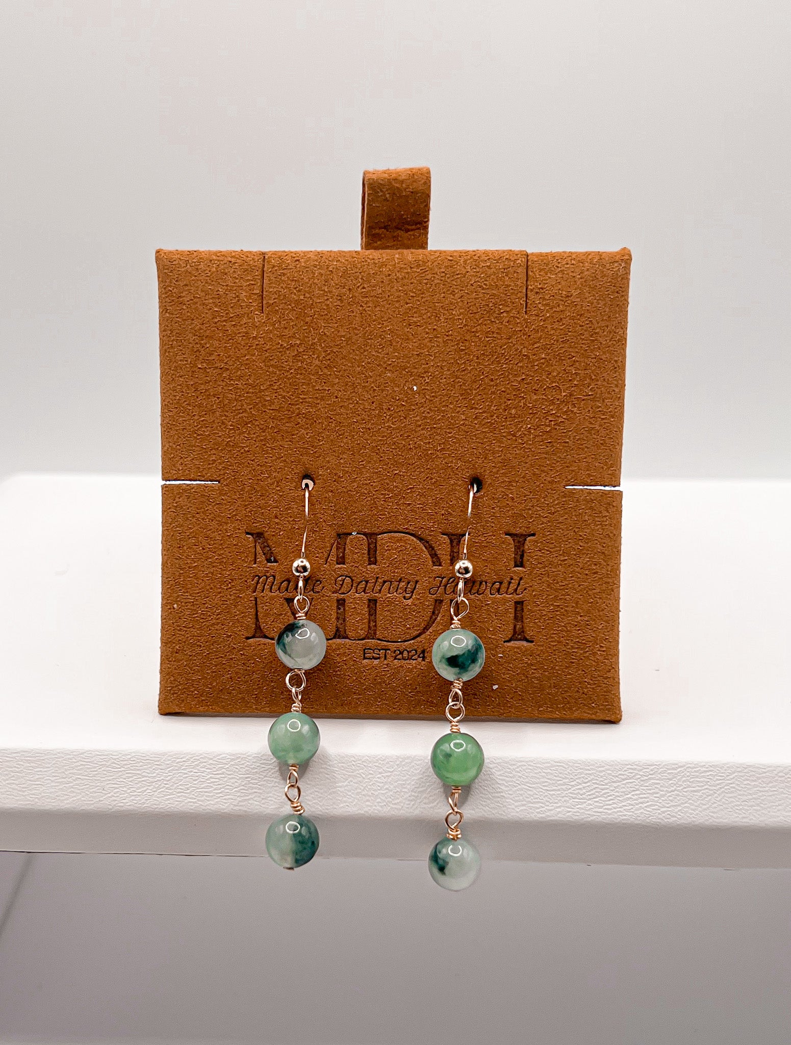 These 6.5mm Triple Stacked Jade Earrings feature beautiful green marbled jade stones set with elegant 14k gold hooks. Their timeless design adds a touch of natural sophistication to any outfit, while the lightweight construction ensures comfortable wear throughout your day. Perfect for elevating both casual and formal looks with a subtle, supportive style.